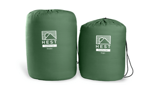 The HEST Comforter, offered in both a single and double size, is designed based upon the science of better sleep to provide the comfort and warmth of your home comforter in a packable, smart, outdoor ready design. The Comforter features 100% recycled polyester fill with no hot melt bonding, outdoor-ready-easy-to-clean fabric, and a clever cinch & tuck footbox design. The footbox keeps the comforter in place & supports thermoregulation throughout the night by allowing glabrous skin ( hands & feet) to easily stick out into fresh air and regulate your body temperature as needed for an optimal sleep experience outdoors. Unlike your traditional sleeping bag, your feet and hands can roam free of constriction! Smart features like top sheet loops and a cinch compression sack make the comforter easy to store, pack, & clean. Cozy up to the best outdoor comforter and sleep better with HEST.